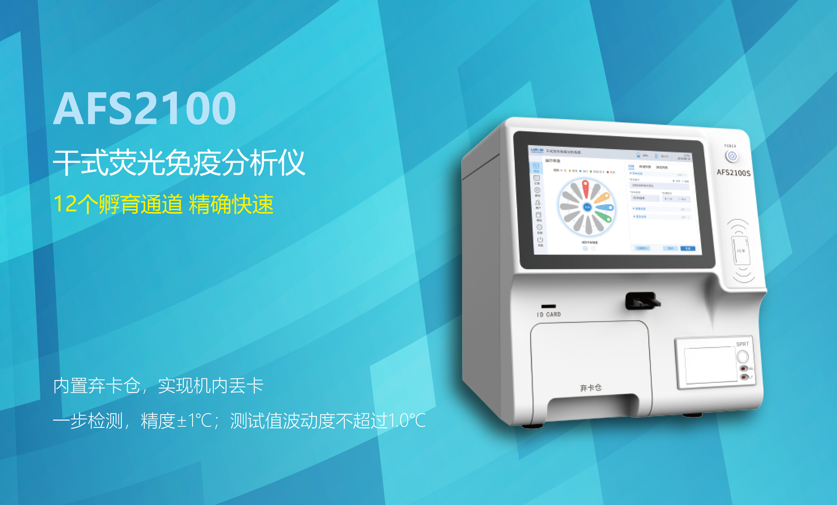 立足服務(wù),推陳出新,藍(lán)勃生物再發(fā)力,攜新品助力POCT行業(yè),AFS2100新品是在我司已有產(chǎn)品AFS2000A多通道干式熒光免疫分析儀的基礎(chǔ)上再升級,提高產(chǎn)品配置、豐富產(chǎn)品功能,實(shí)現(xiàn)產(chǎn)品多元化矩陣,滿足不同客戶多元化需求。