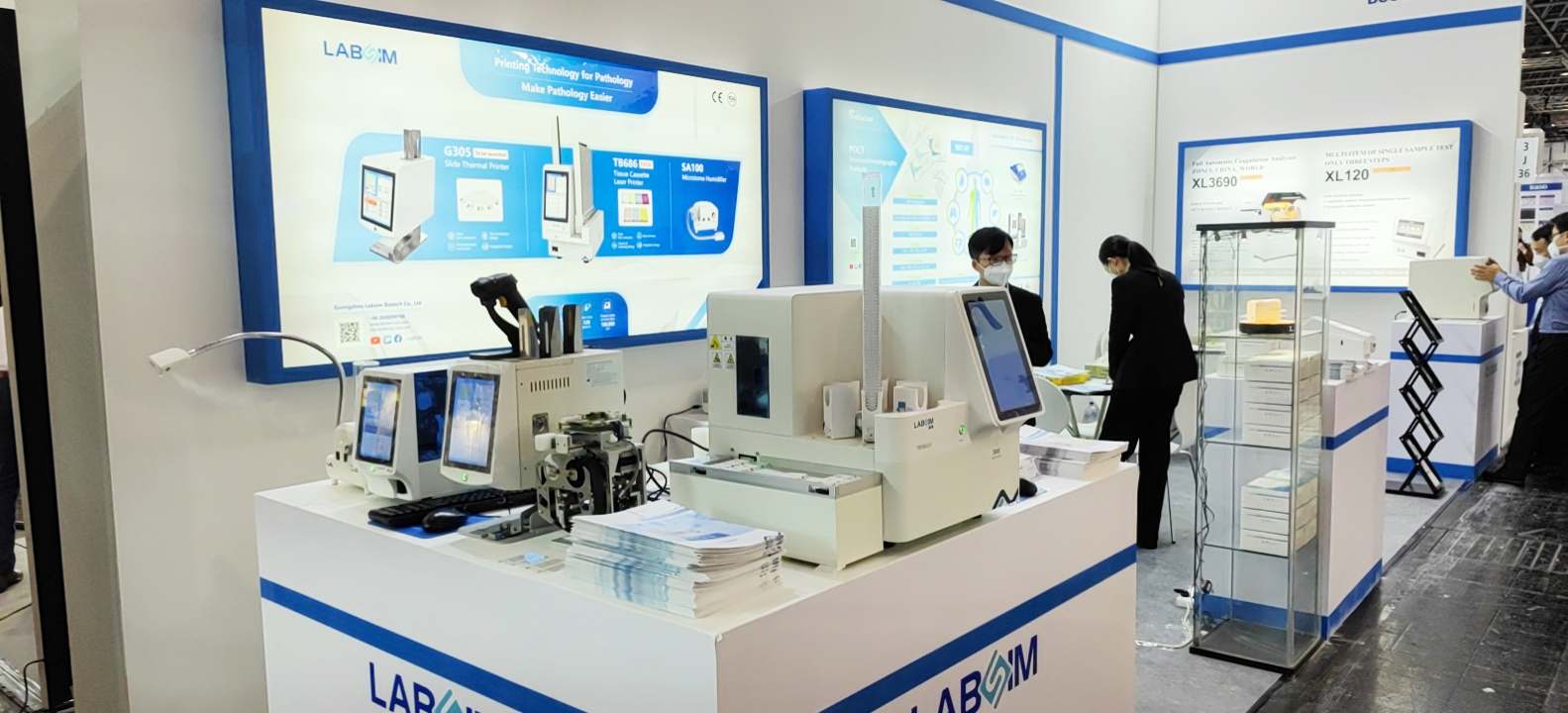 藍(lán)勃閃耀全場(chǎng),展位上熒光免疫分析儀、組織盒紫外激光書(shū)寫(xiě)儀、載玻片書(shū)寫(xiě)儀、切片霧化器等專(zhuān)業(yè)設(shè)備倍受客戶(hù)青睞,其中最為大家所熟知的AFS-1000干式熒光免疫分析儀、TB586UV組織盒紫外激光書(shū)寫(xiě)儀、TB686組織盒激光書(shū)寫(xiě)儀、G363UV載玻片紫外激光書(shū)寫(xiě)儀等更是成為當(dāng)中的耀眼明星,充分為全球展現(xiàn)了中國(guó)醫(yī)療檢測(cè)設(shè)備品牌的硬實(shí)力,完美詮釋民族品牌的魅力。